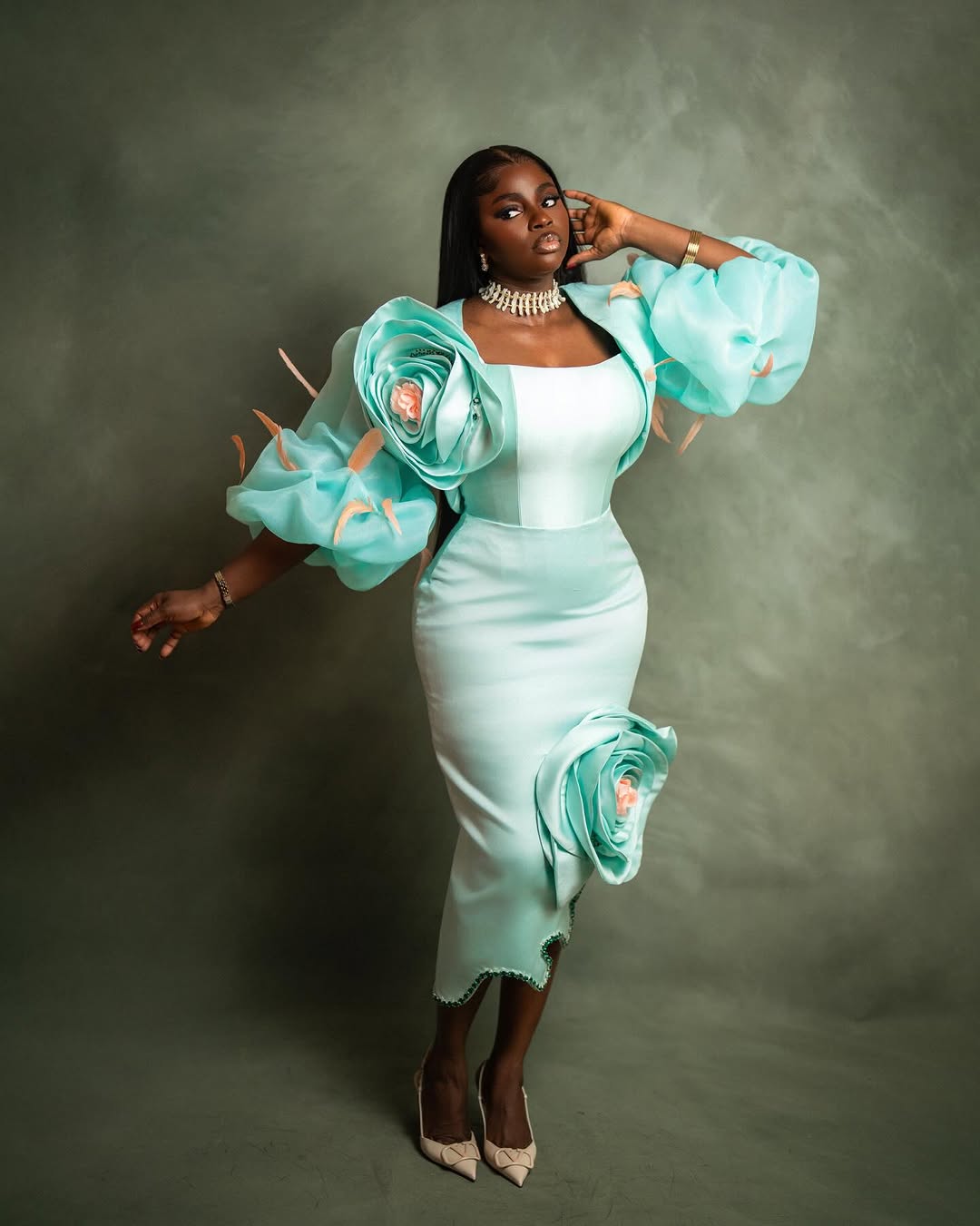 Belle: @bammybestowed | Dress: @glambylove.ng | Stylist: @vestasnigeria | Photography: @marcsongz_ | Makeup: @debbiestaunch_