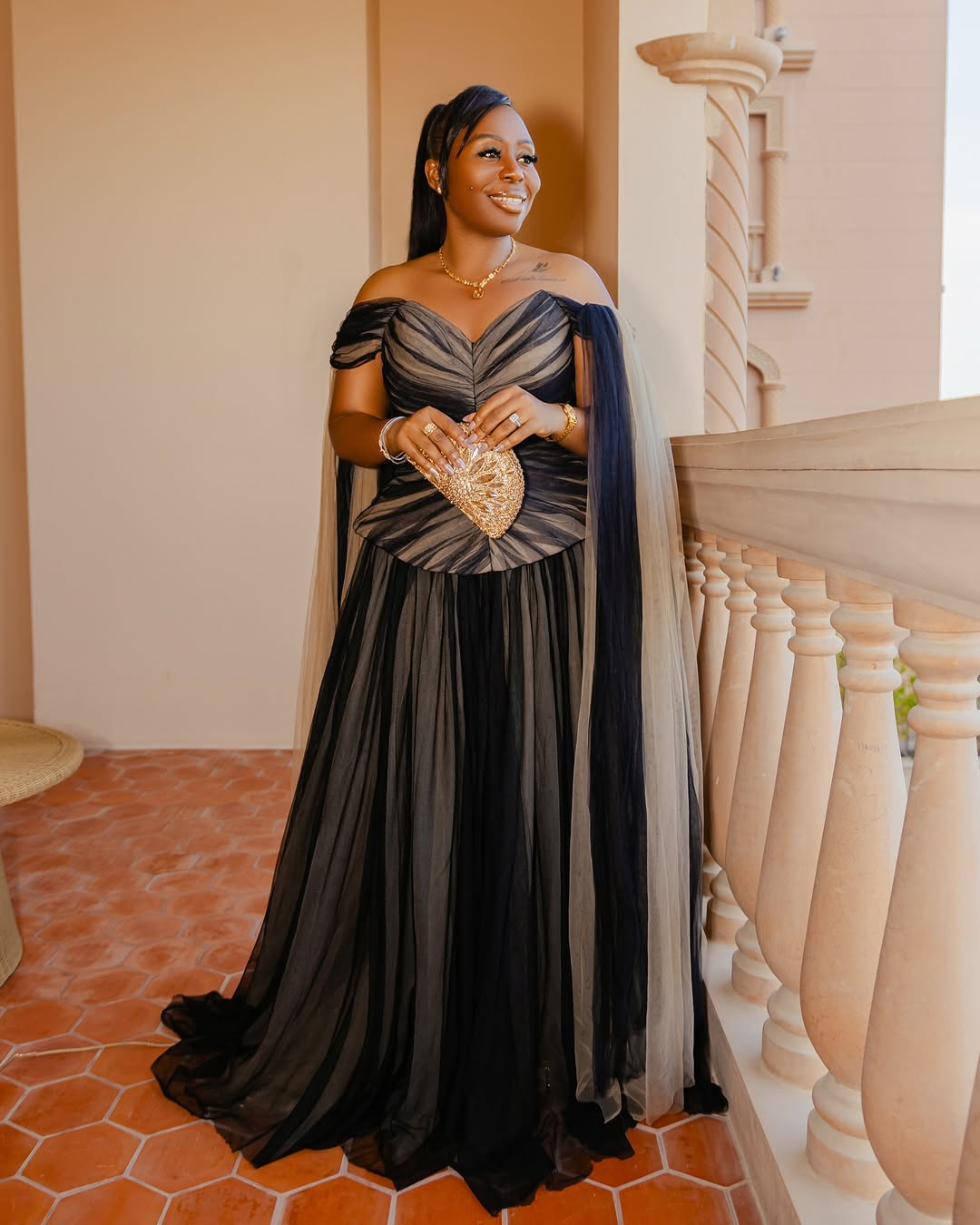 Belle: @vanessa_gyimah | Dress: @saadiasanusi | Shoes: @aminamuaddi | Hair: @sabrina.porsche | Purse: @ysl