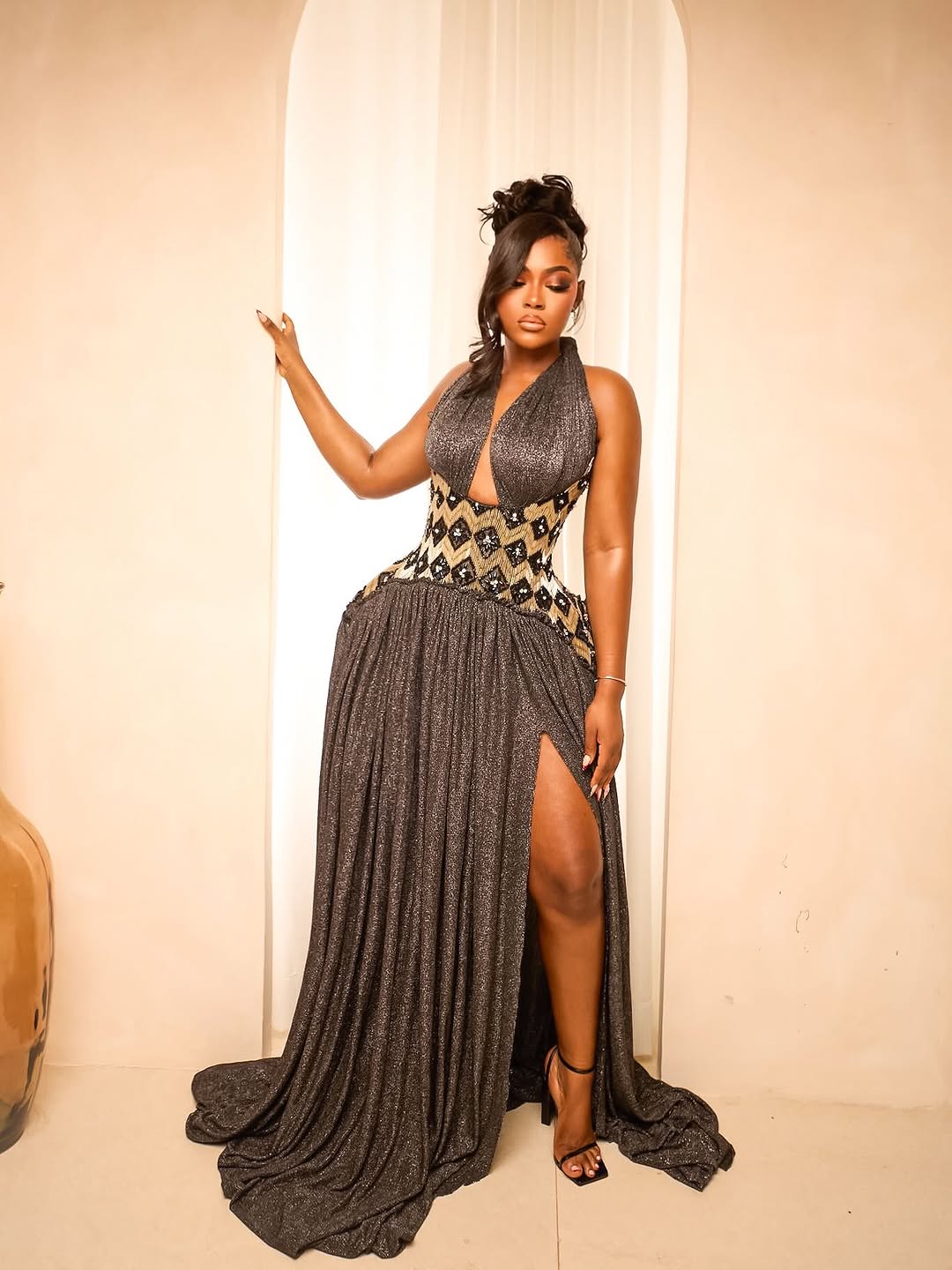 Belle@itsabakakra | Dress: @ankaravogue.gh | Photography: @gido_photography | Makeup: @__ms_beautystudio | Heels: @peng_and_everything_ | Accessories: @abi.gailsacesoriessss
