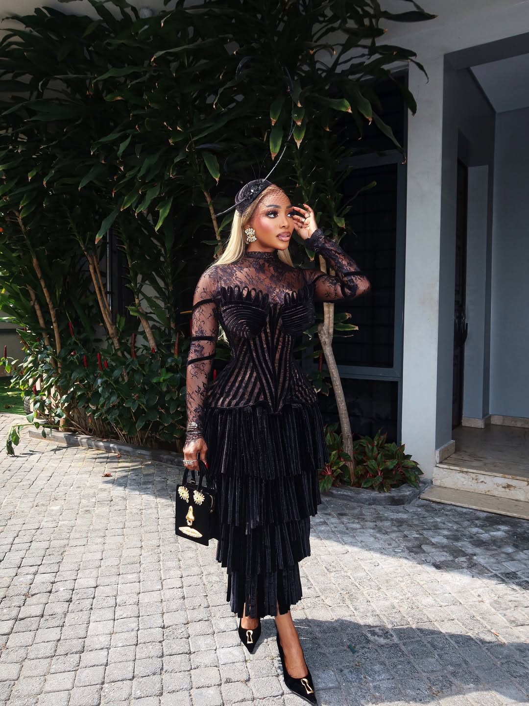 Belle: @chiomagoodhair | Dress: @niovoofficial | Hair: @goodhairltd | Fascinator: @_crownit | Bag/Shoes/Earrings: @schiaparelli | Photography: @njayshotit
