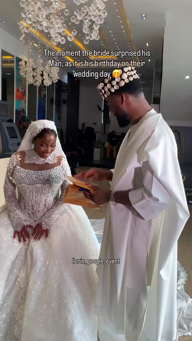 He approached her, completely oblivious to the fact that she was holding his birthday gifts. Once he got to her, he realized what was going on and immediately melted into a wide smile. Looking absolutely stunning in her wedding dress, she handed him the luxury gifts. Obviously very excited, he unboxed the gifts immediately. He hugged her, kissed her and even got emotional. We can absolutely feel how grateful he was for this sweet gesture, a truly beautiful moment for the lovebirds.