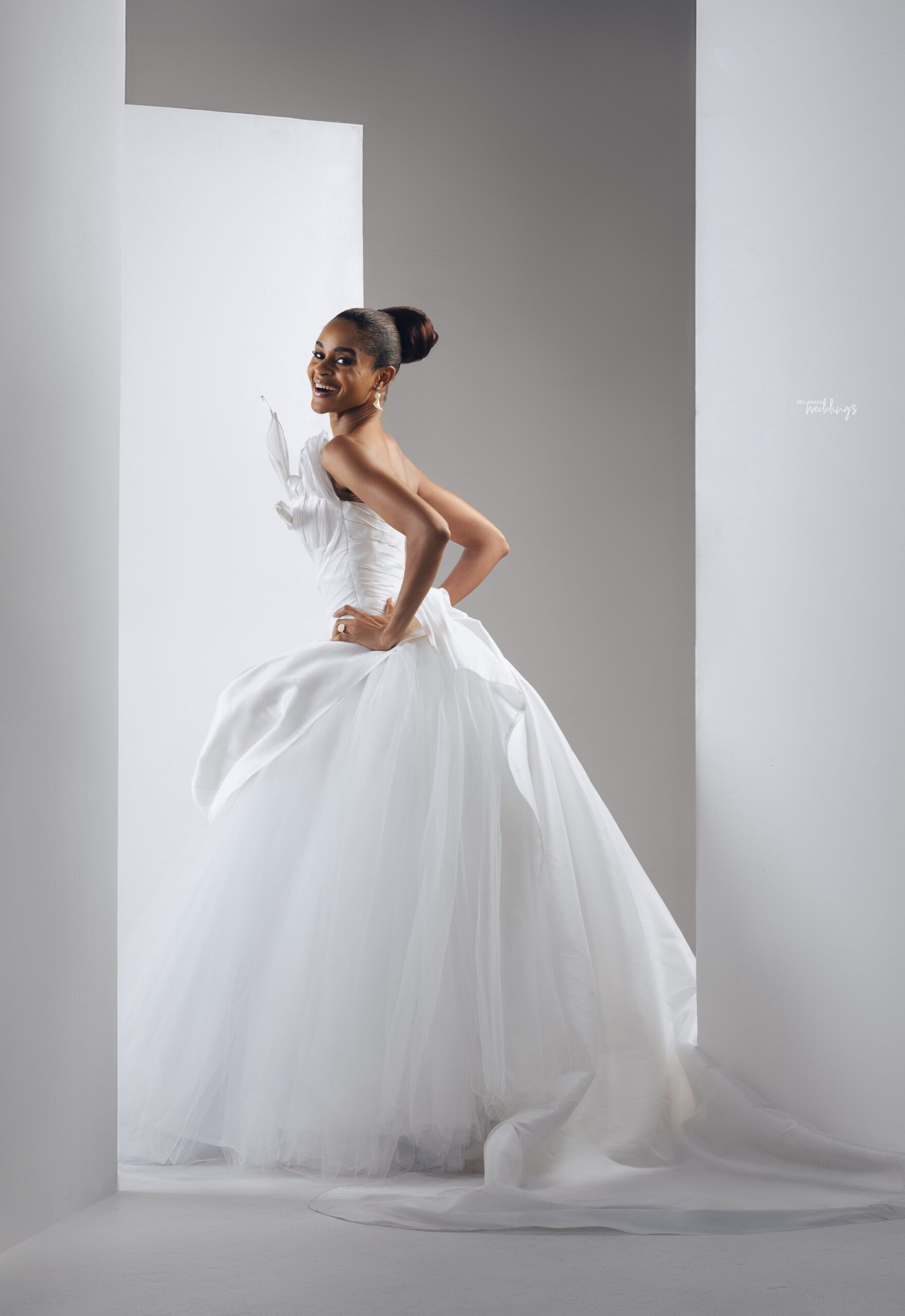 The name of this trendsetting collection stems from a praise endearment in the Igbo language. Meaning “a precious lady,” we can definitely see it reflected in this work of art. Every breathtaking piece was crafted with care and innovation. From the unique way the fabrics are cut and sculpted to the details sewn into the silhouettes. The goal is simple: to make a dress that reflects who you are because your wedding day should be all about your true preferences. These dresses are representations of expert craftsmanship, deeply rich in style and timeless elegance. Egovinu’nwa is not just a bridal collection; it is an exquisite invitation to show up to your white wedding as your beautiful self in truly grand style.