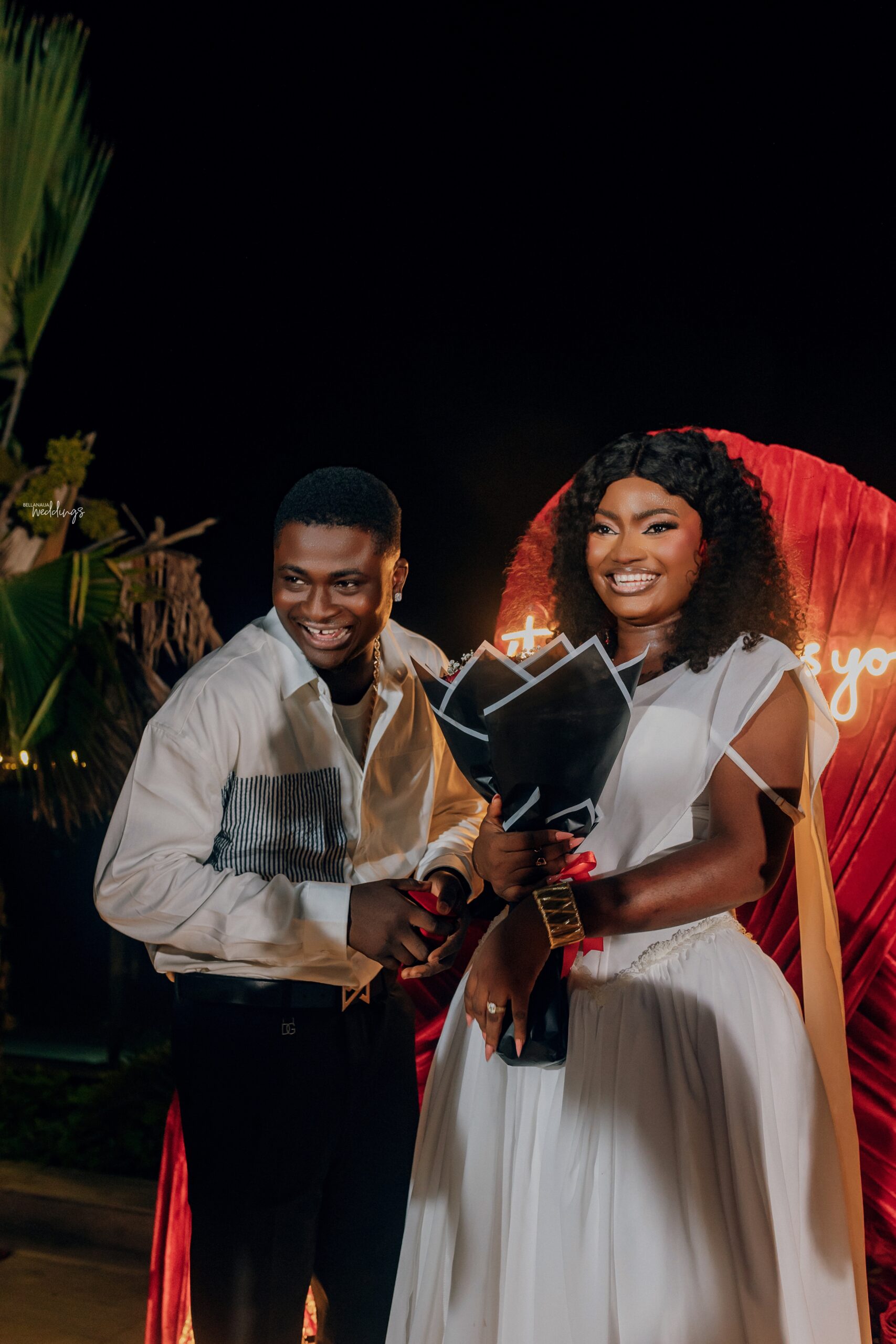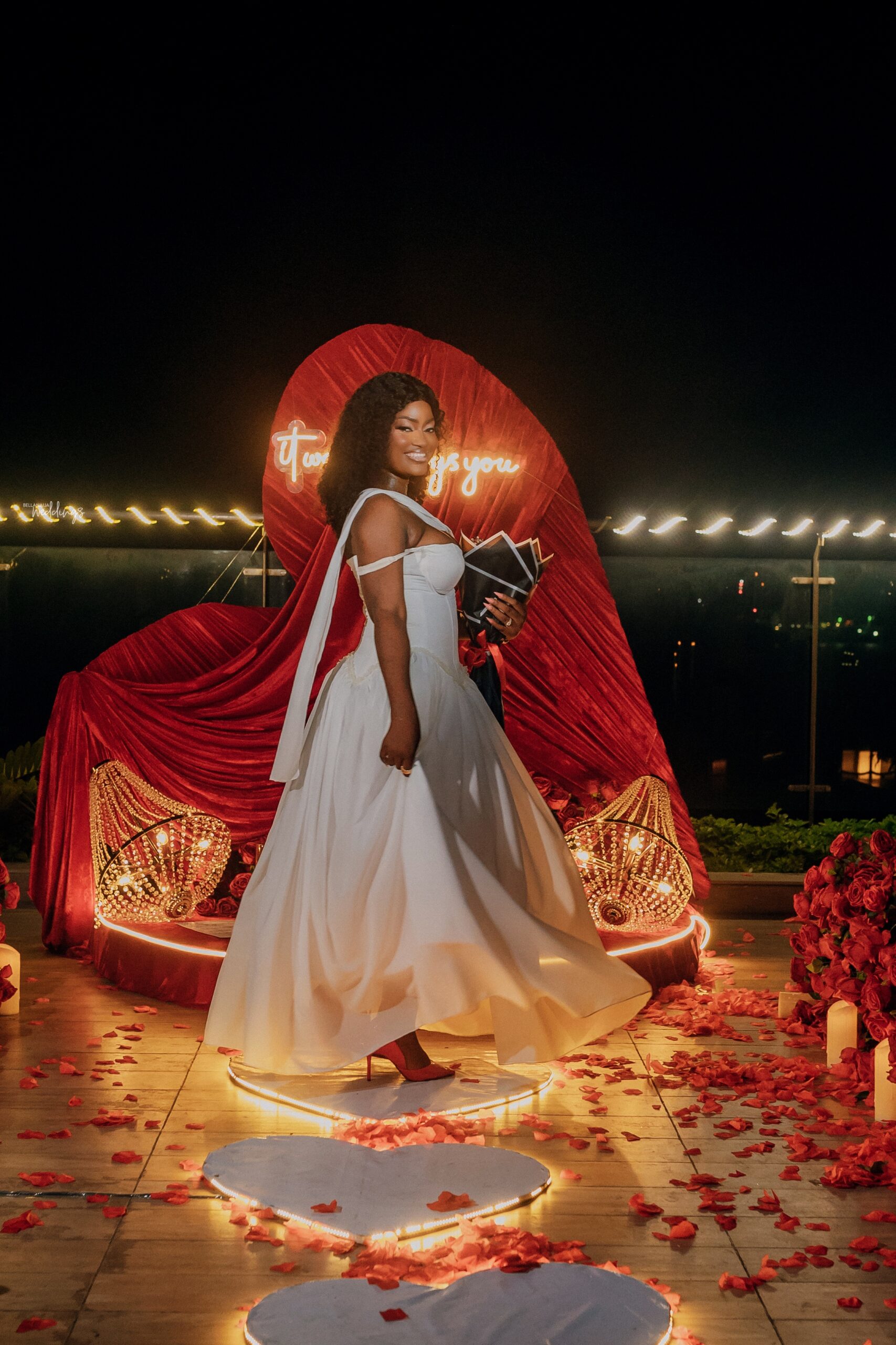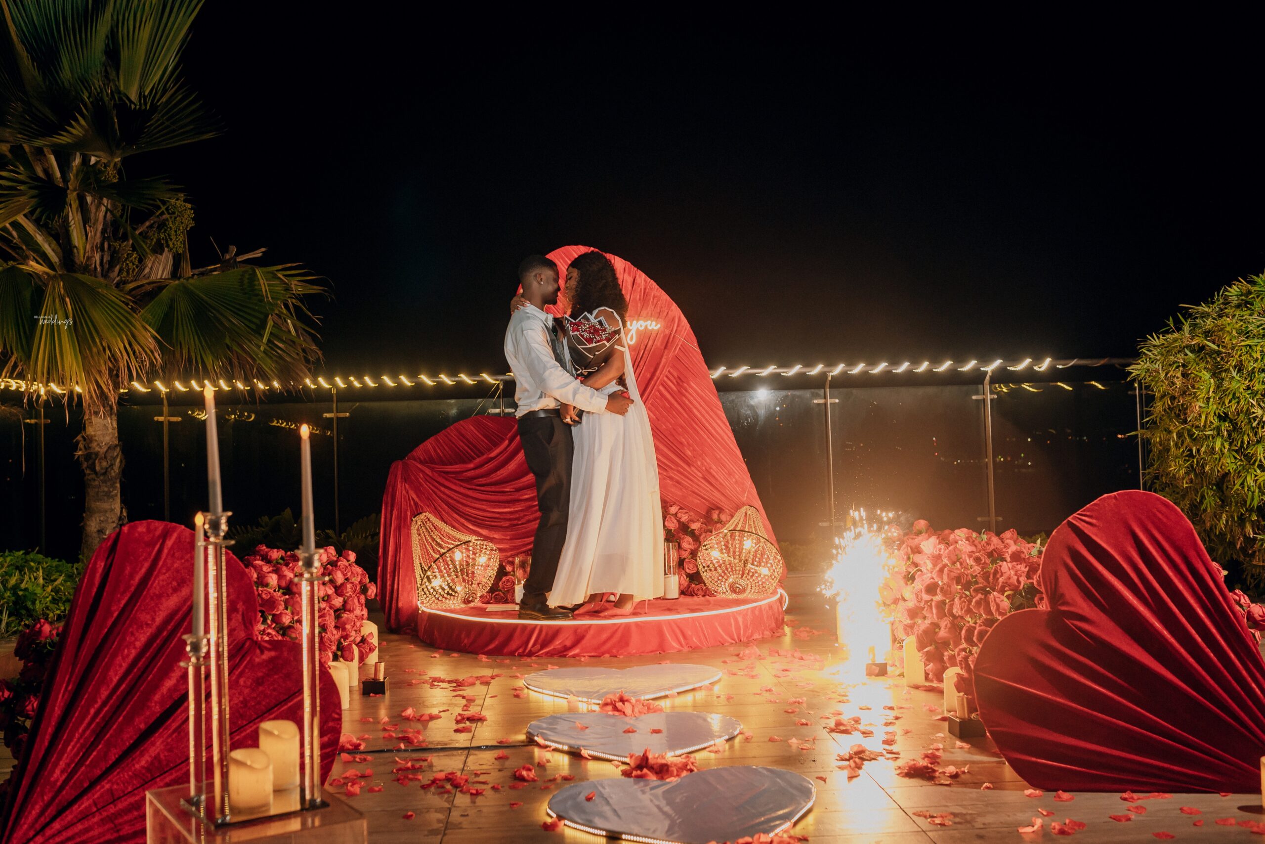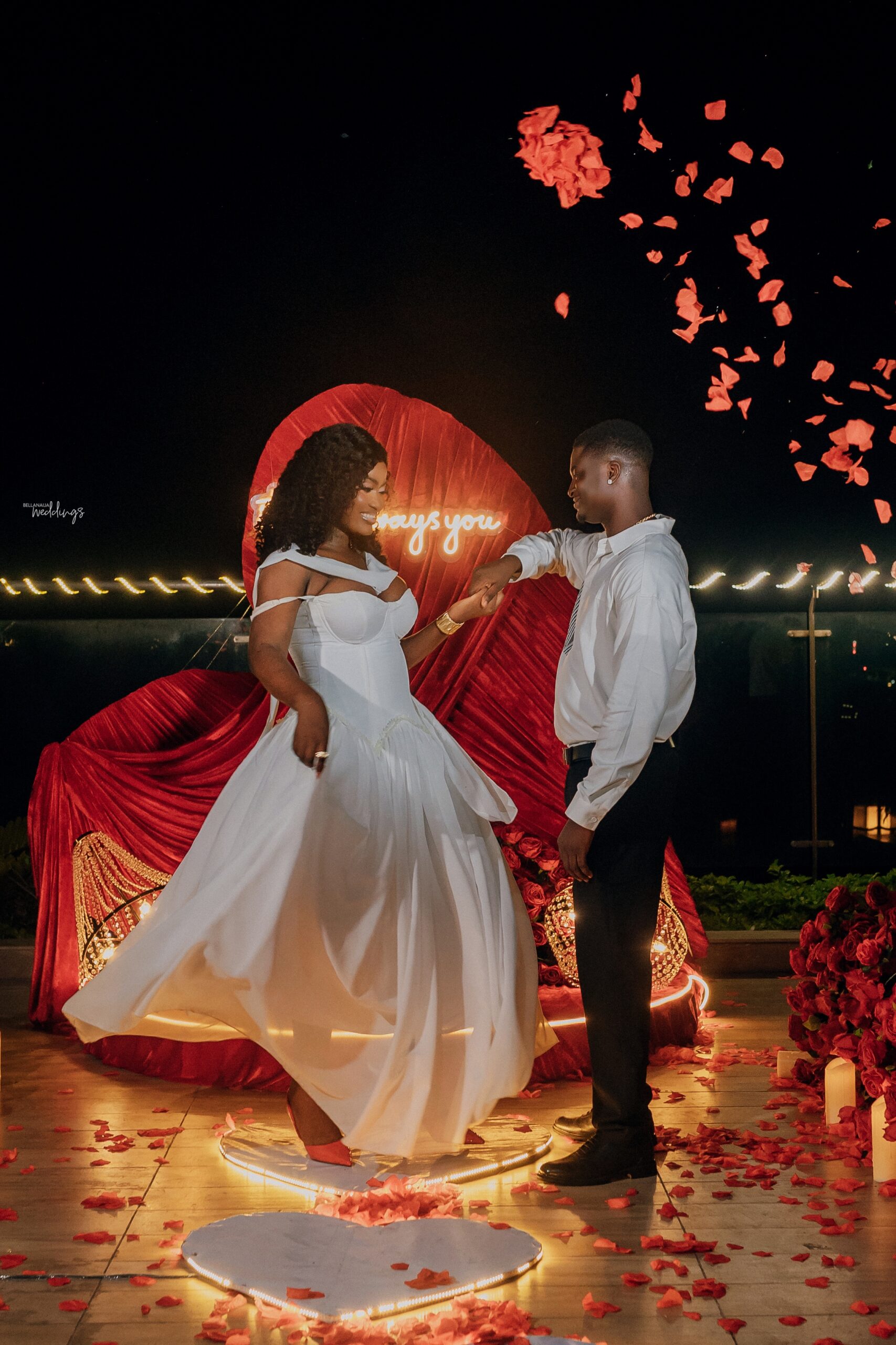 That very day they met, Esther had taken a sick leave from work and had to get a few things from the mall. As fate would have it, Oluwatosin also dropped by at the same mall. When he saw her, he instantly felt a connection and approached her. That simple conversation they had has now led them to seal their love forever! Against the charming views of the sea, a beautiful red decor lay in wait. Then Esther stepped in, completely shocked! Oluwatosin got down on his knee and asked her to make him the happiest man alive, and she said yes! We can see it all beautifully unravel in their stunning proposal photos. Now wedding bells are ringing, and it’s just all surreal to take in that their forever is about to take flight. 😍