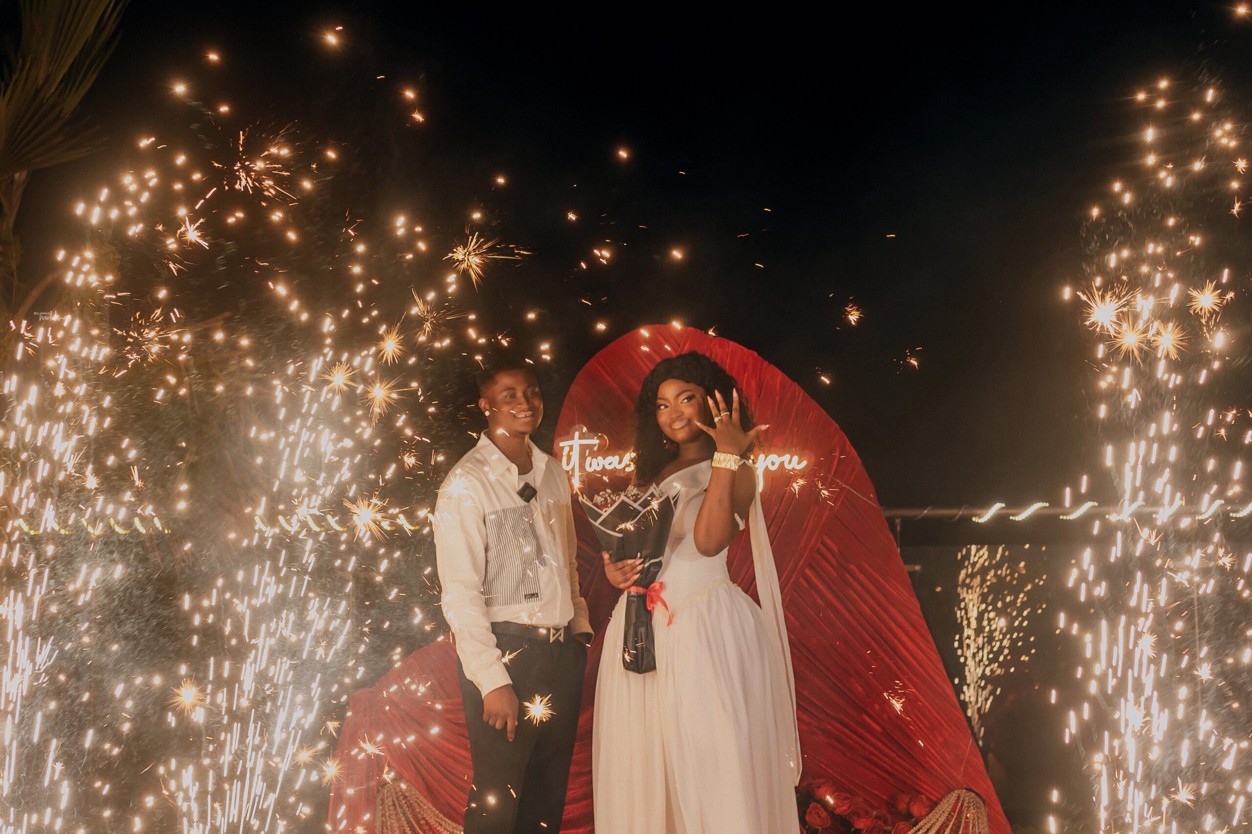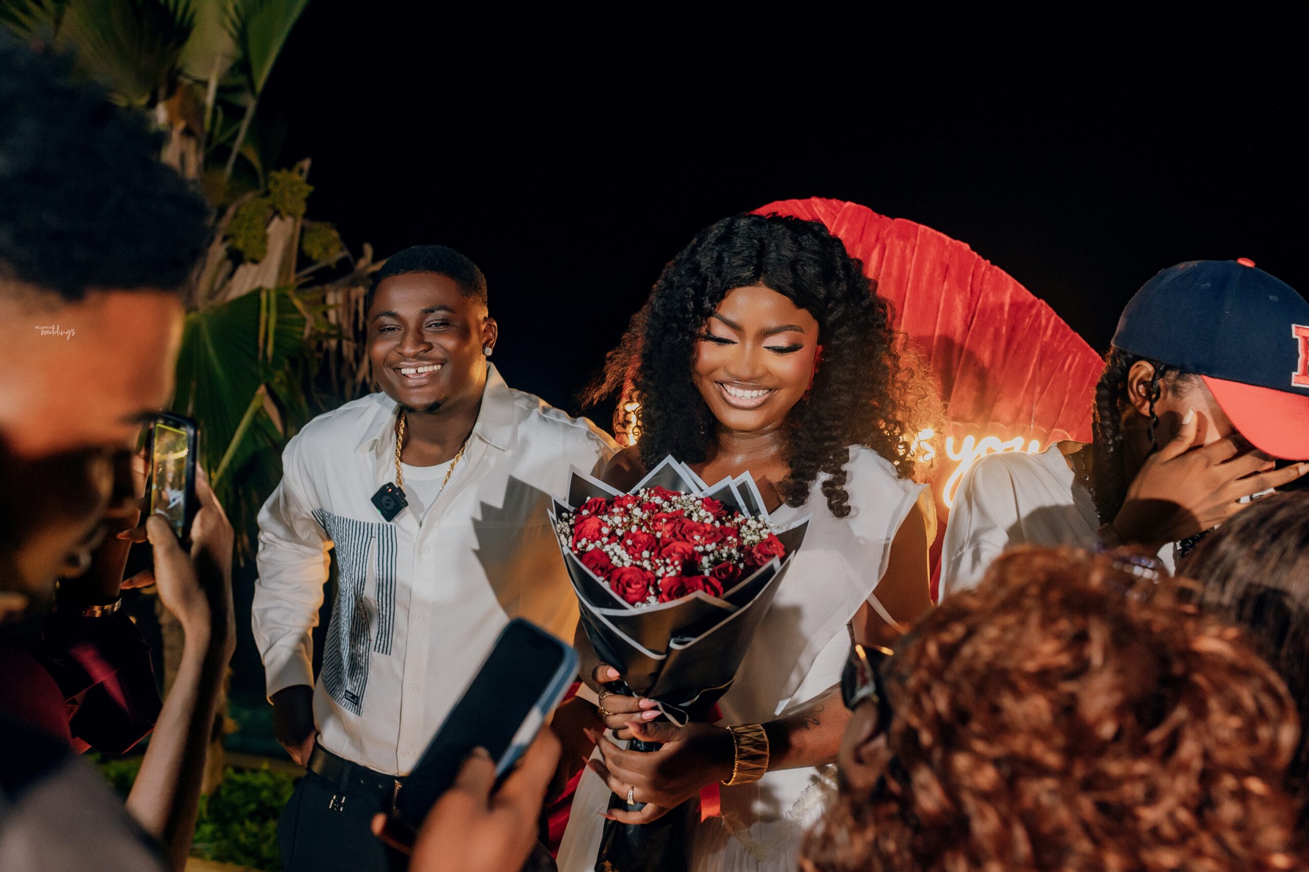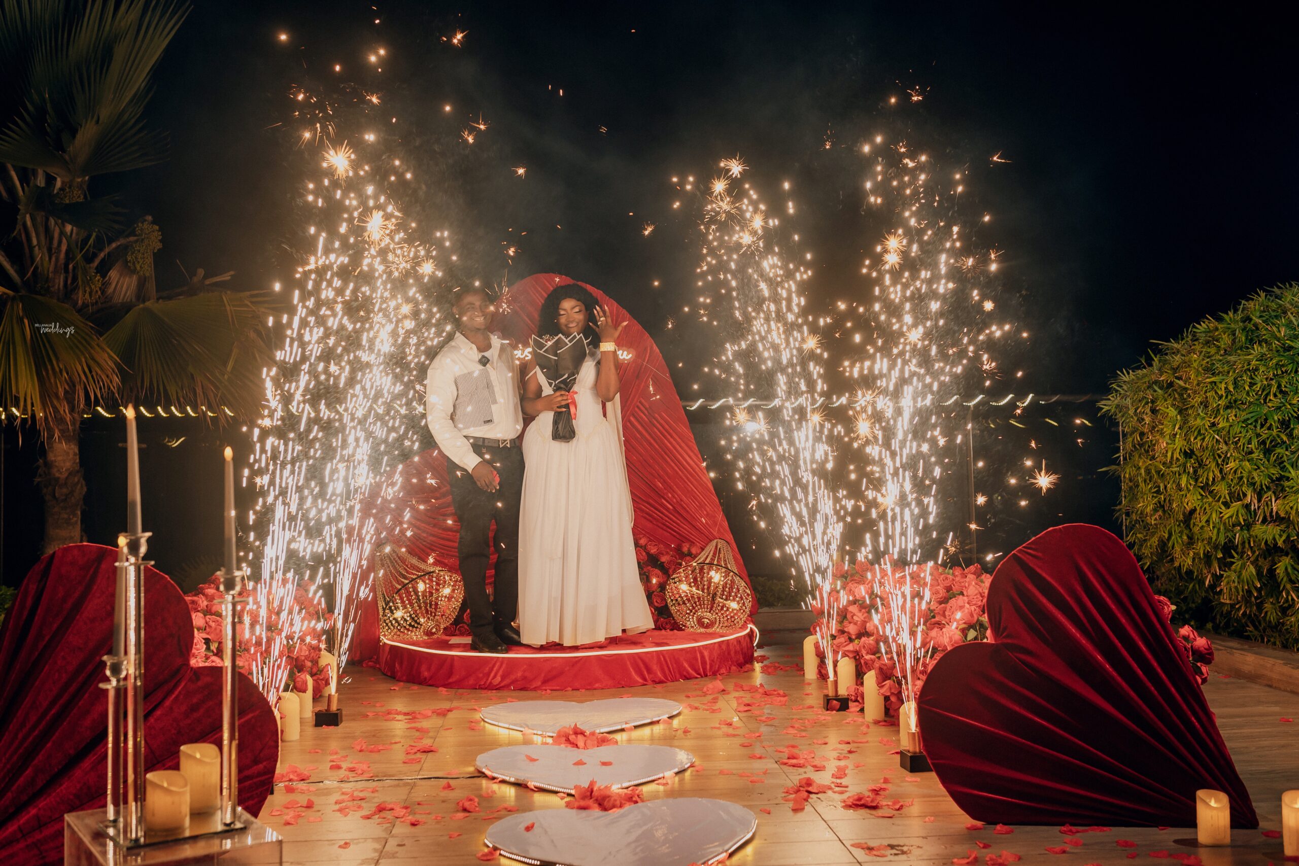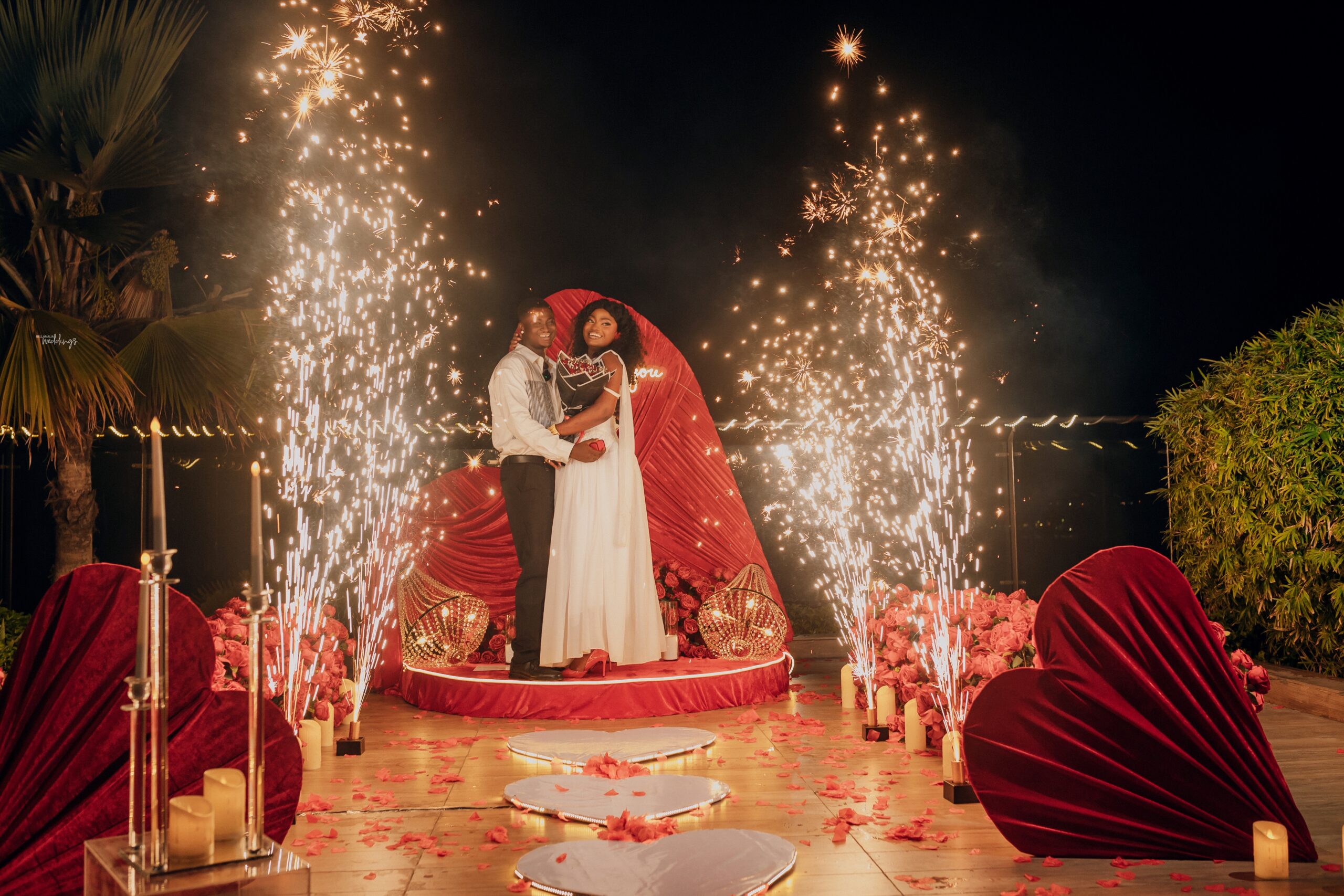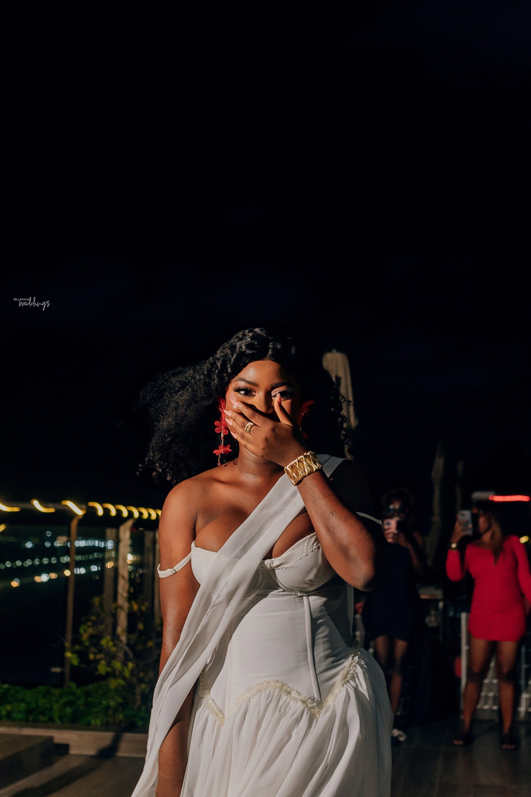 That very day they met, Esther had taken a sick leave from work and had to get a few things from the mall. As fate would have it, Oluwatosin also dropped by at the same mall. When he saw her, he instantly felt a connection and approached her. That simple conversation they had has now led them to seal their love forever! Against the charming views of the sea, a beautiful red decor lay in wait. Then Esther stepped in, completely shocked! Oluwatosin got down on his knee and asked her to make him the happiest man alive, and she said yes! We can see it all beautifully unravel in their stunning proposal photos. Now wedding bells are ringing, and it’s just all surreal to take in that their forever is about to take flight. 😍