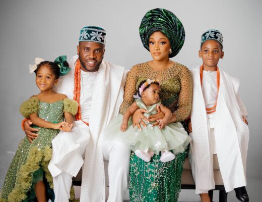 You have to agree that everything about love is beautiful. I mean, that’s how best to describe it! It is always a delight when we see married couples celebrate a huge milestone in their relationship. Right now, we are totally enjoying this love between Gaise Baba and his darling wife Funto Ibuoye as they celebrate their fifth wedding anniversary. What makes it even more special is that they recreated their look at their traditional engagement (see their story here) and this time, their two boys are in it.