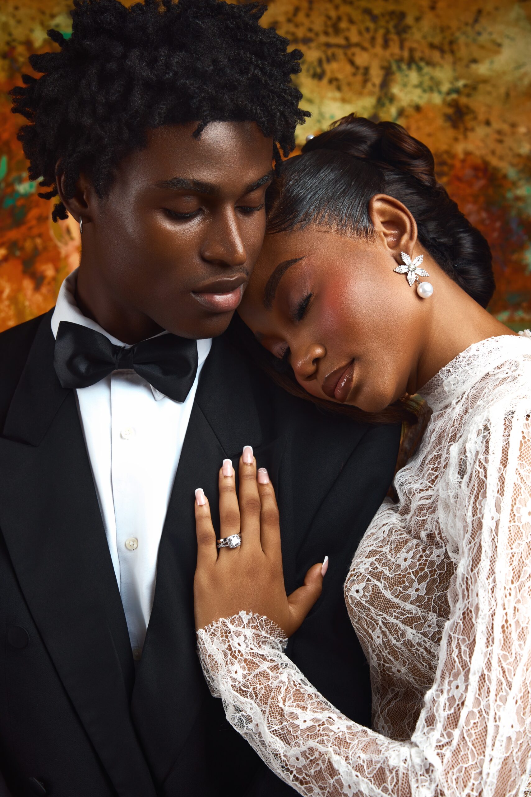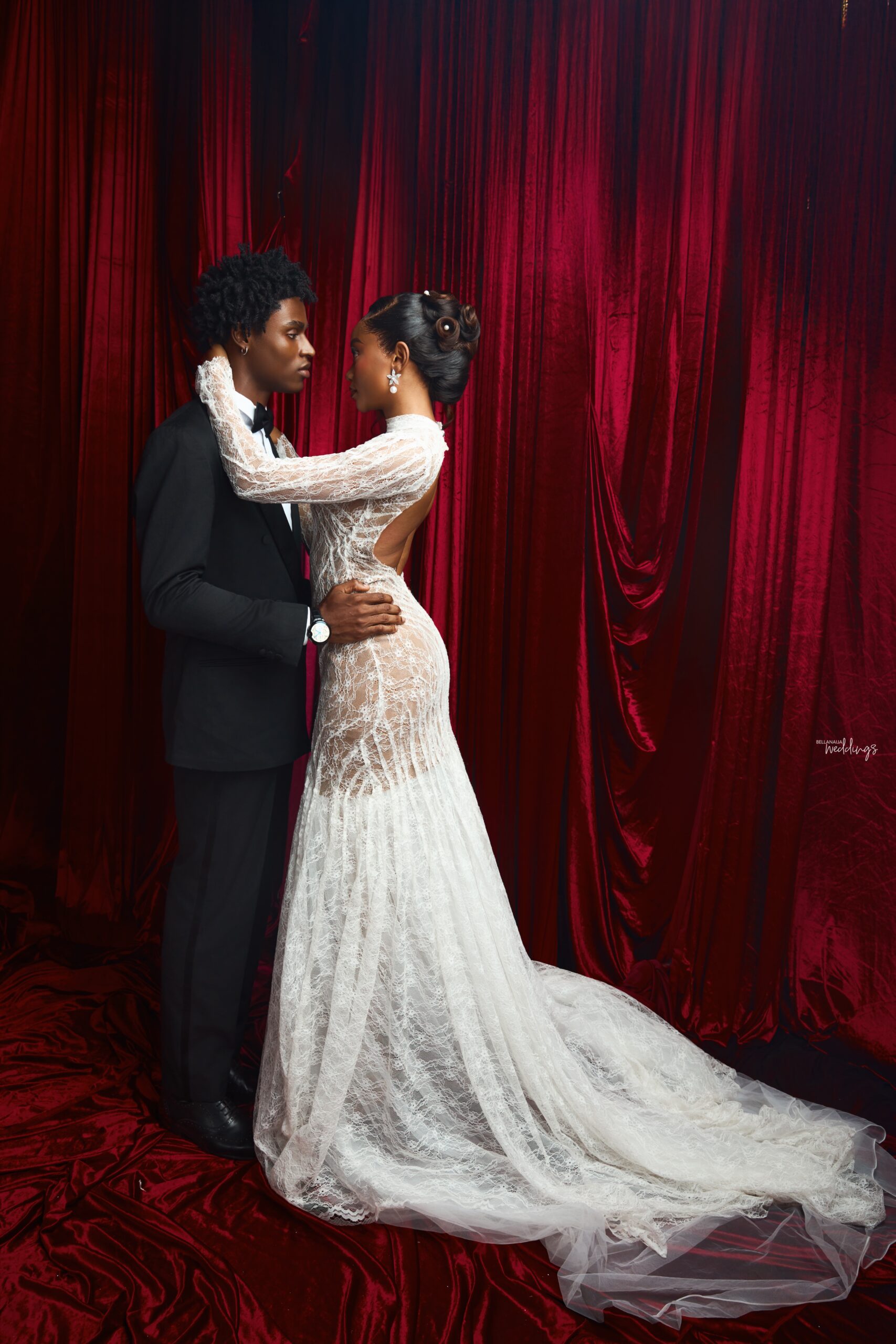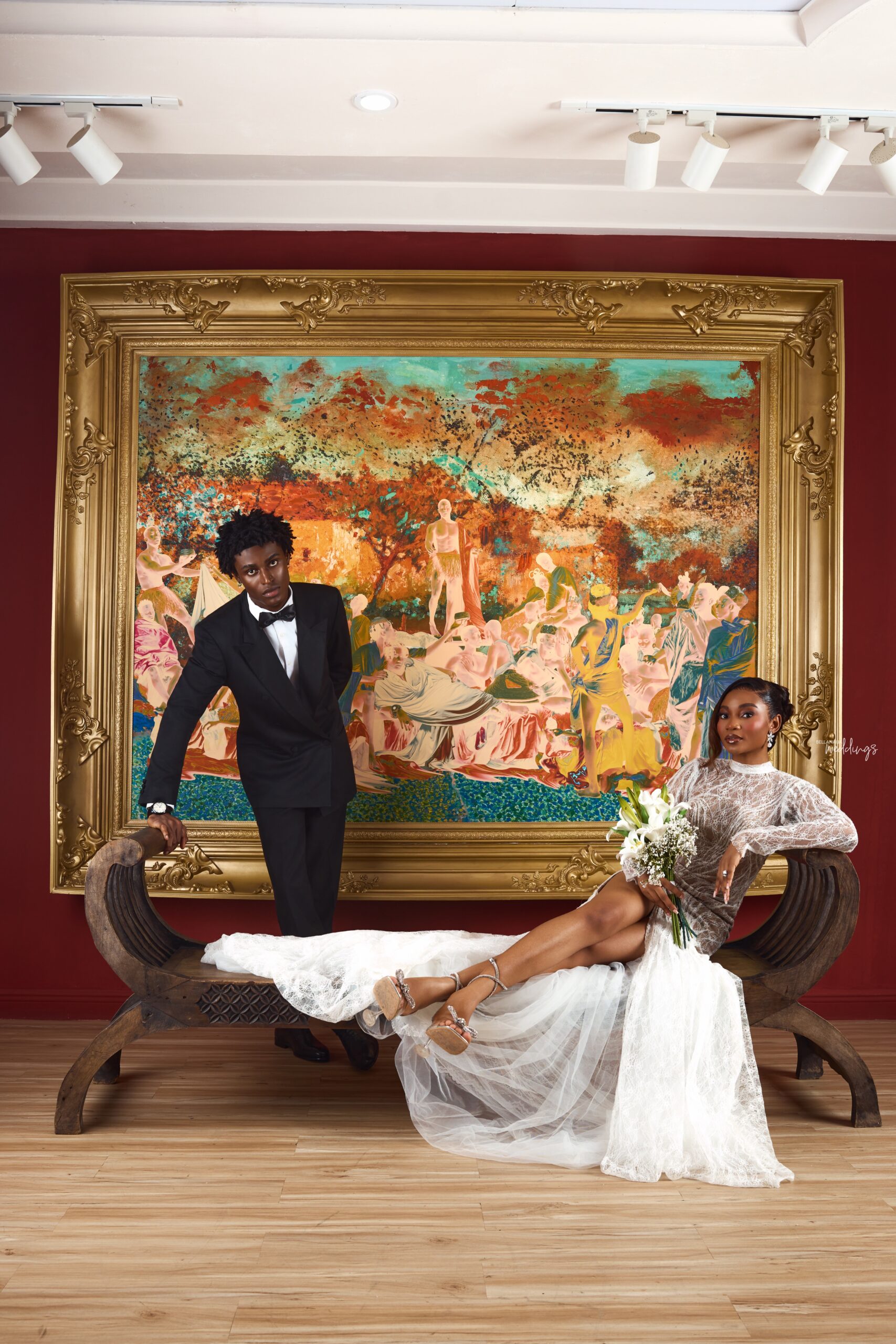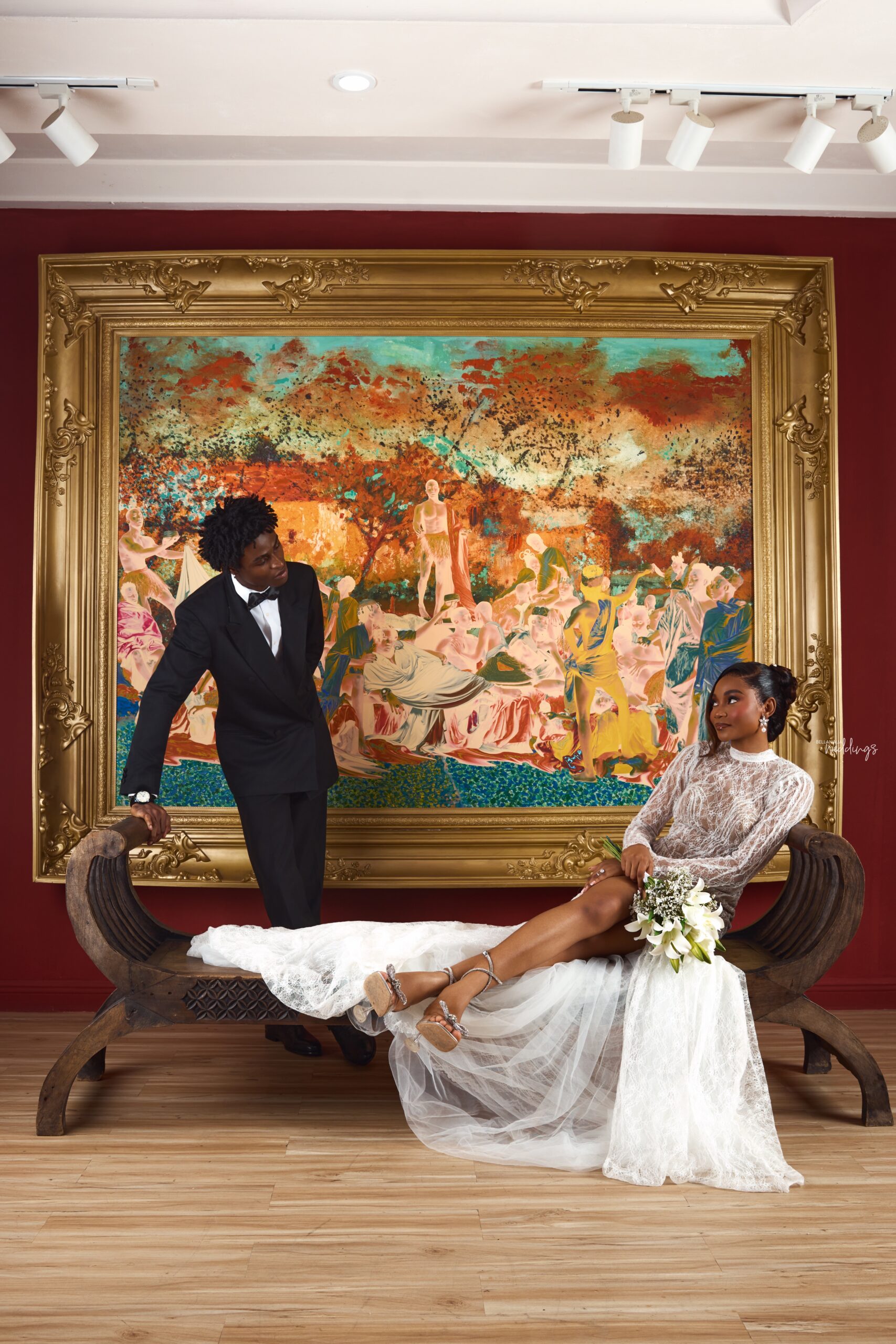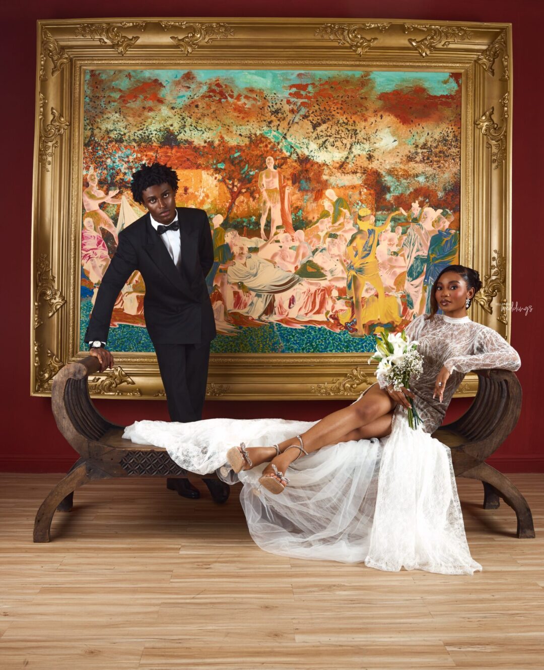 We drew inspiration from fine art, luxury fashion campaigns, and cinematic storytelling. Using classical paintings as a recurring backdrop to ground the couple in a sense of timelessness and artistic prestige. Every frame was intentional. The contrast of white lace against deep crimson, the power of a silhouette, the intimacy of a stolen glance. Our goal was to show that a wedding day can be both deeply personal and visually arresting. That brides and grooms can be photographed not just as a couple in love, but as subjects worthy of a magazine cover.
