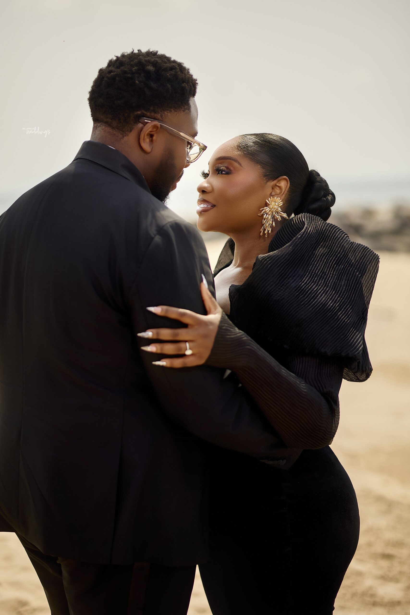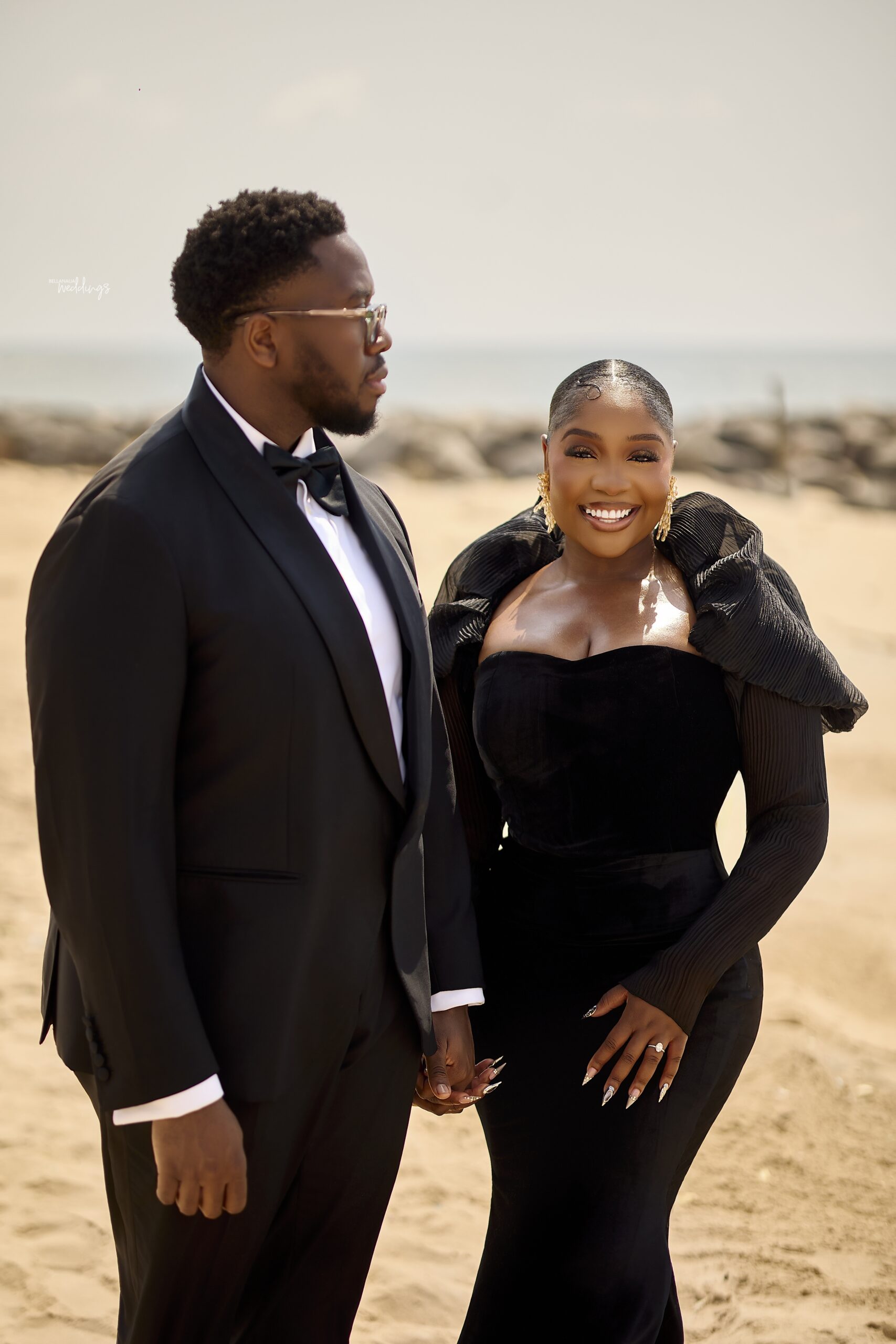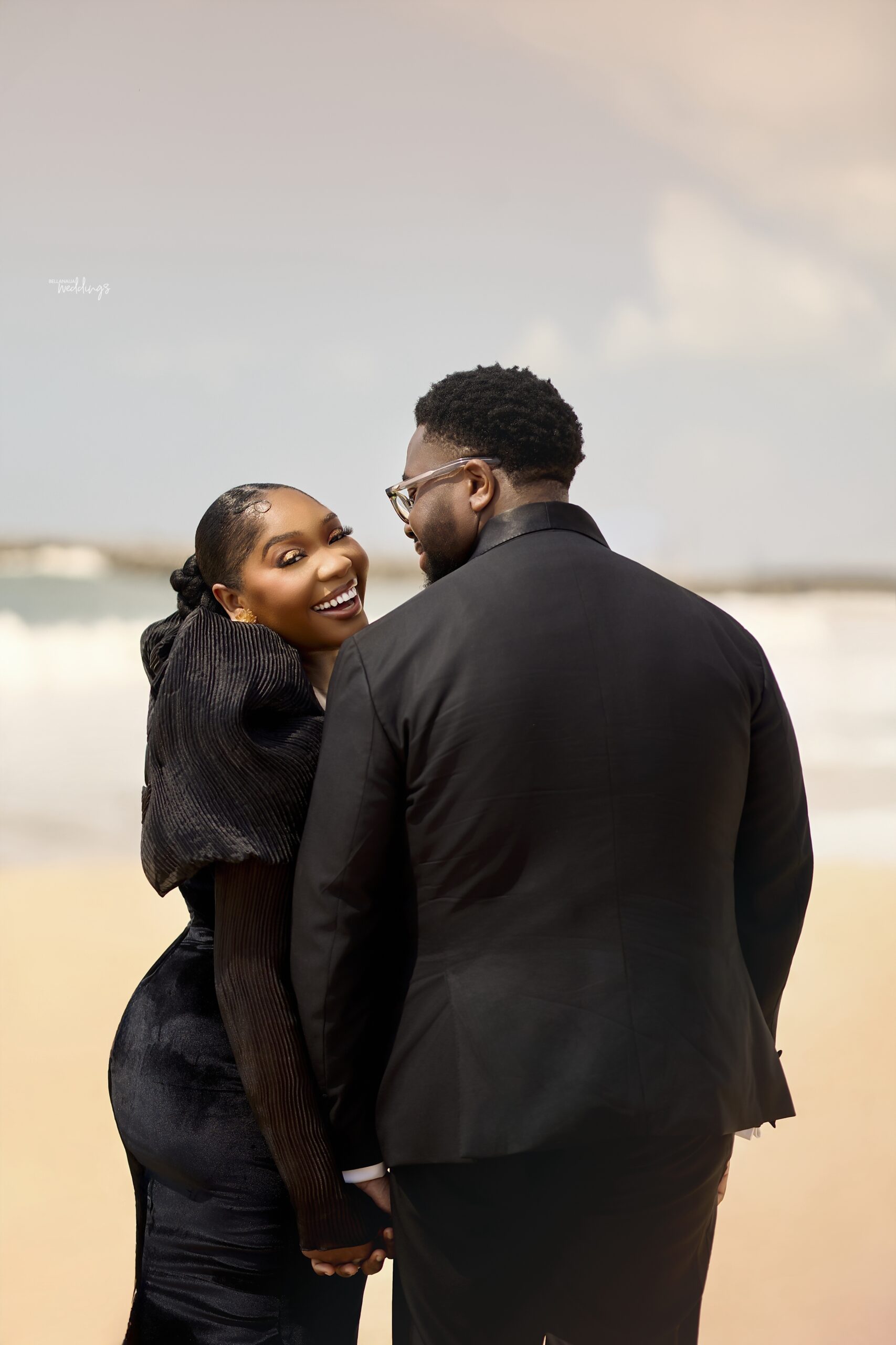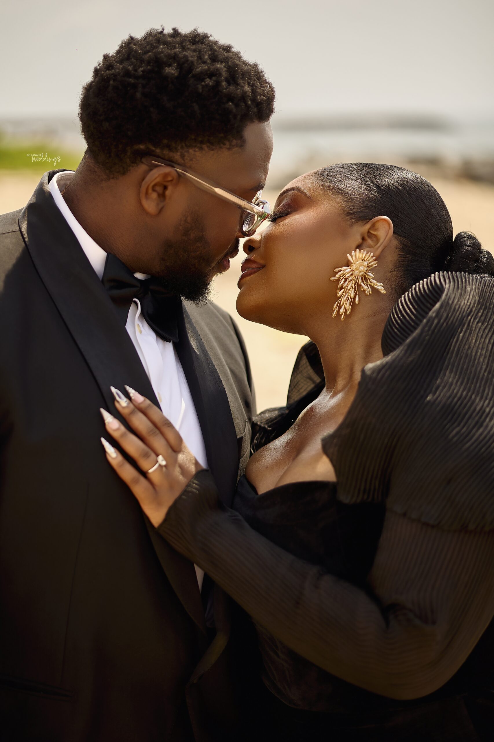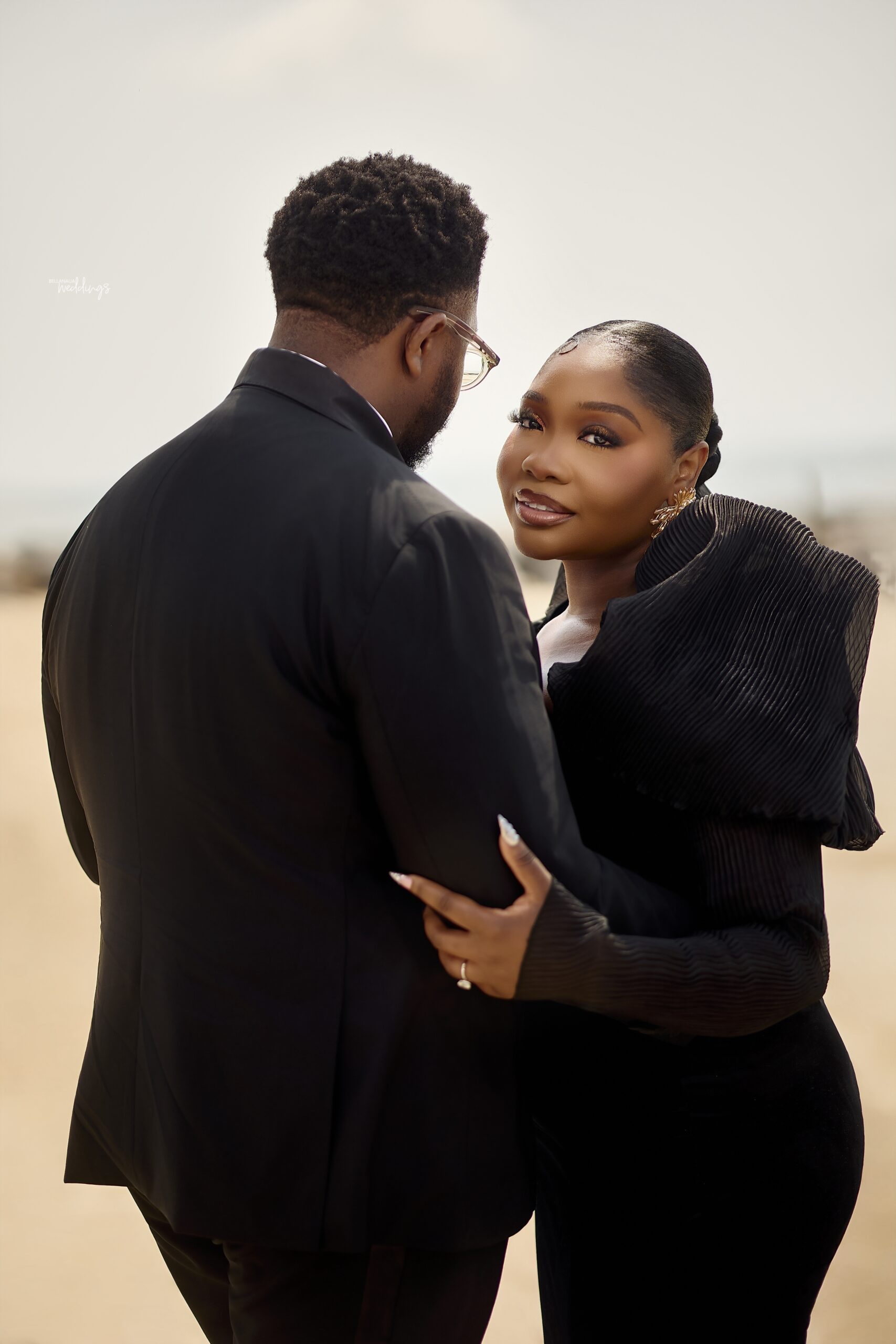 2022 was a year of reflection for Tobi, and he prayed to God for a beautiful love. Little did he know that these prayers were heard and about to be answered. Shortly after, he had a prophetic dream about his future bride, and it all began to fall into place when he stumbled on Sorsor’s Instagram page. They had a brief birthday interaction, and by some divine luck, they met again at a wedding in London. The connection was instant and perfect. It didn’t take long for Tobi to realise she was the one for him. Now the lovebirds are getting ready to say ‘I do!’ It’s sweet love, electric chemistry and elegant style in their beachside pre-wedding shoot, and we’re loving every bit of it. Their love is an answered prayer, one truly written in the stars. 😍