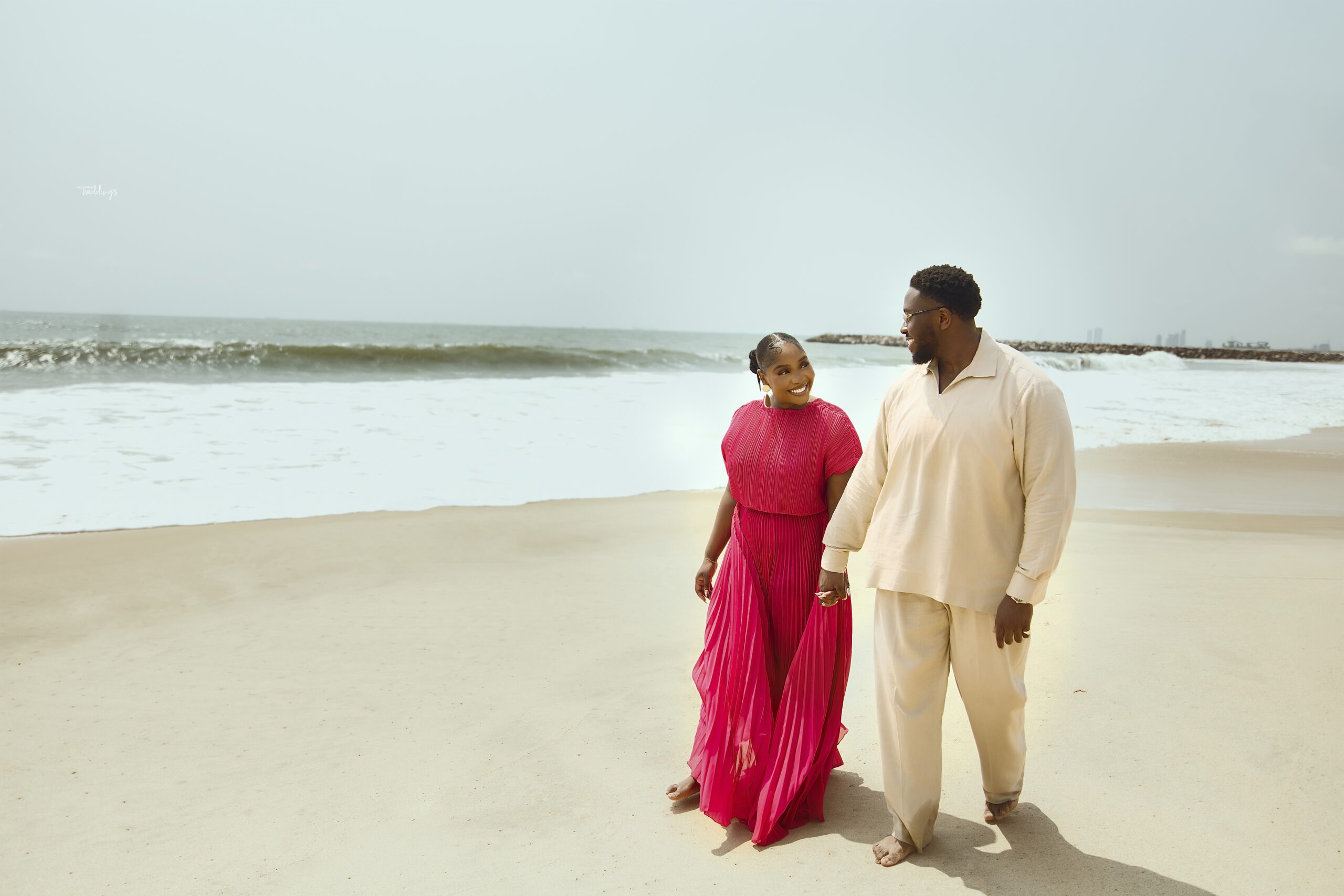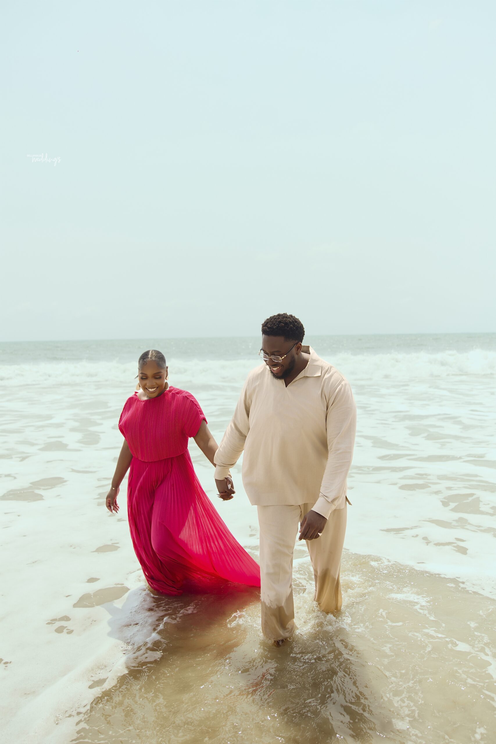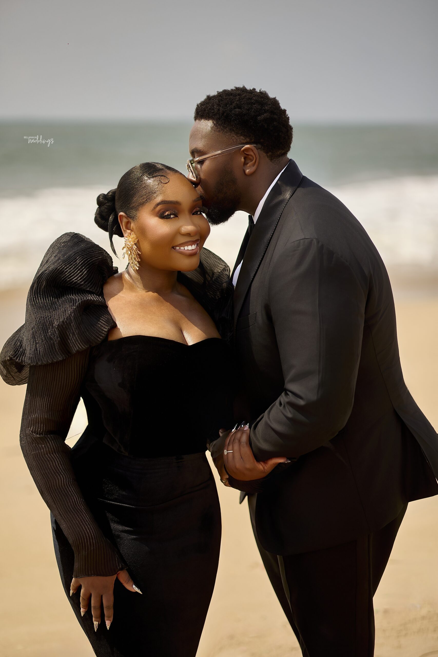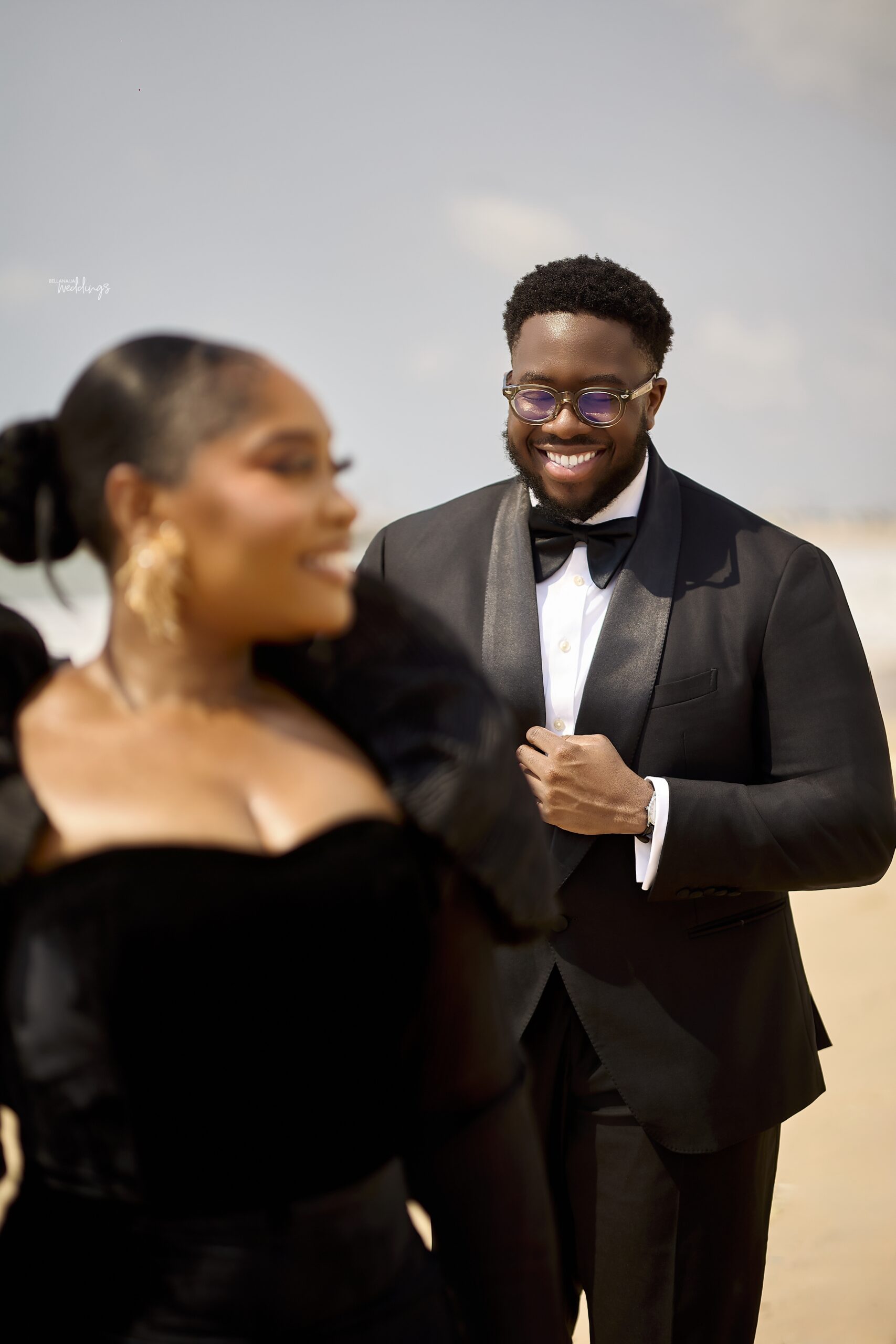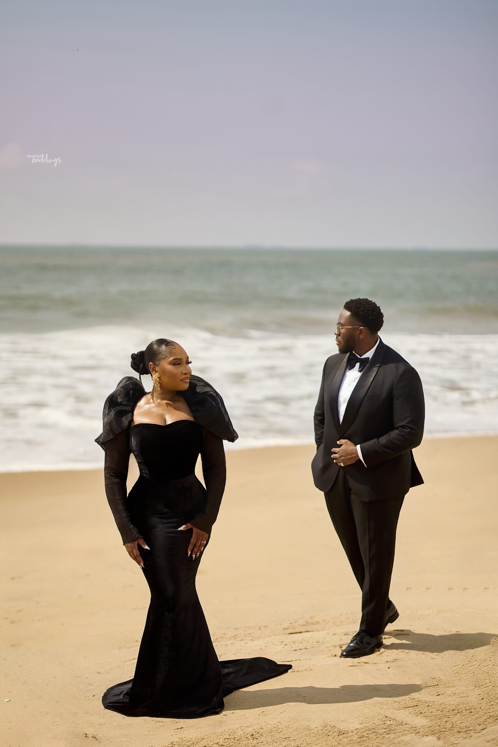 2022 was a year of reflection for Tobi, and he prayed to God for a beautiful love. Little did he know that these prayers were heard and about to be answered. Shortly after, he had a prophetic dream about his future bride, and it all began to fall into place when he stumbled on Sorsor’s Instagram page. They had a brief birthday interaction, and by some divine luck, they met again at a wedding in London. The connection was instant and perfect. It didn’t take long for Tobi to realise she was the one for him. Now the lovebirds are getting ready to say ‘I do!’ It’s sweet love, electric chemistry and elegant style in their beachside pre-wedding shoot, and we’re loving every bit of it. Their love is an answered prayer, one truly written in the stars. 😍