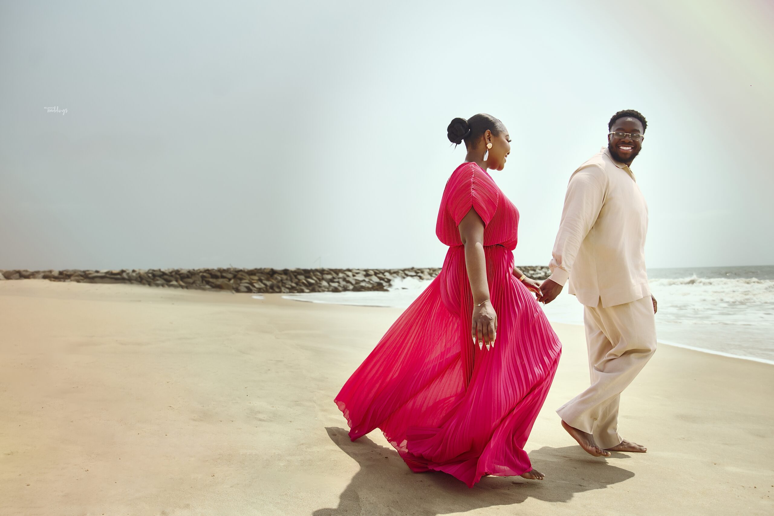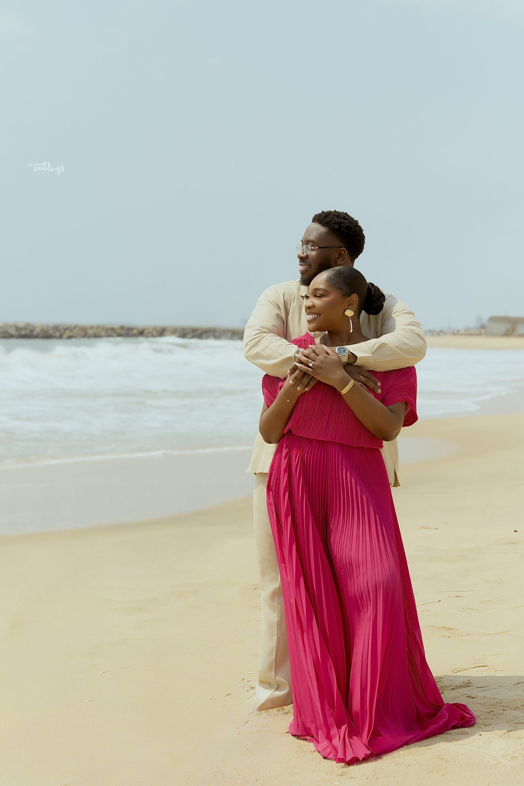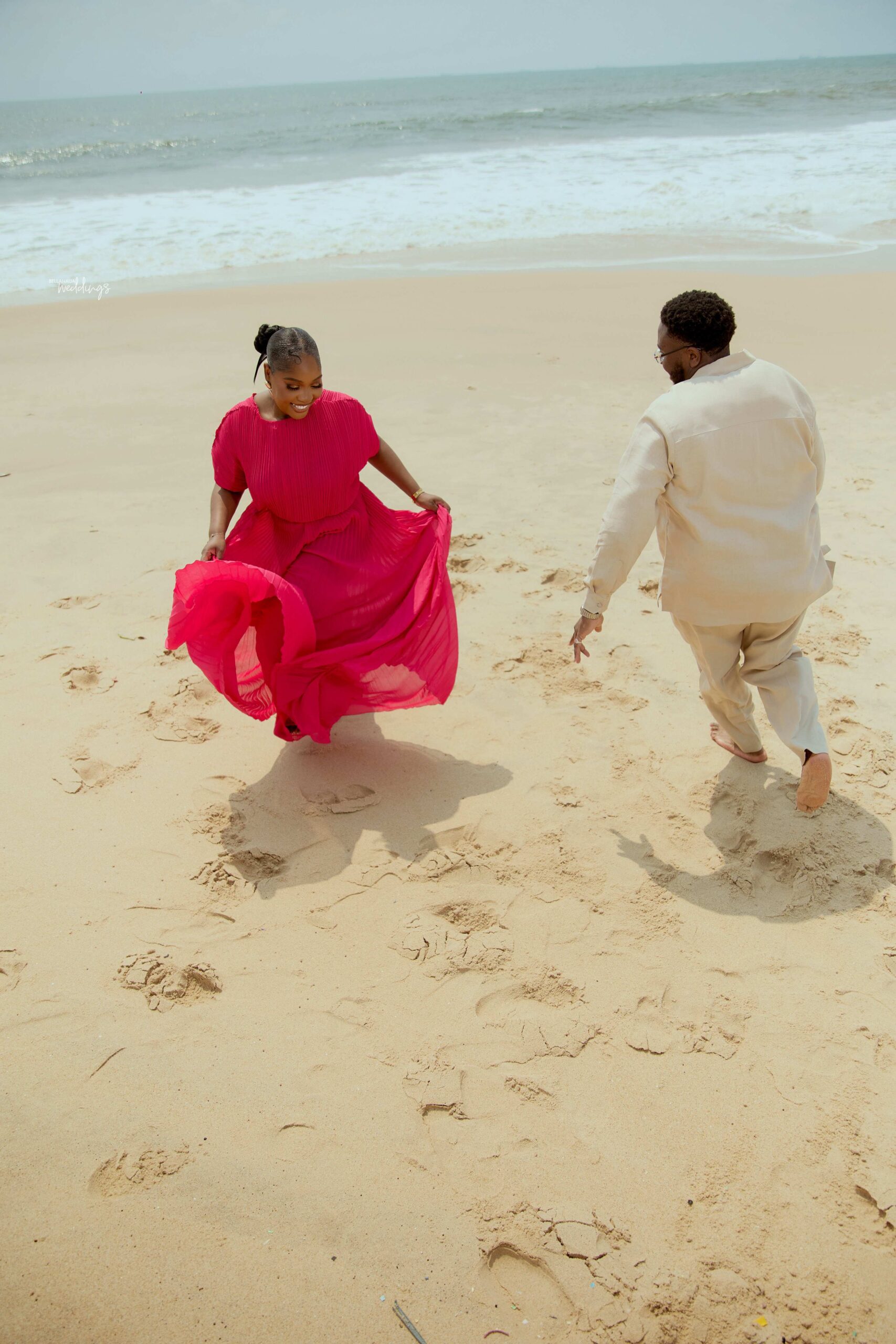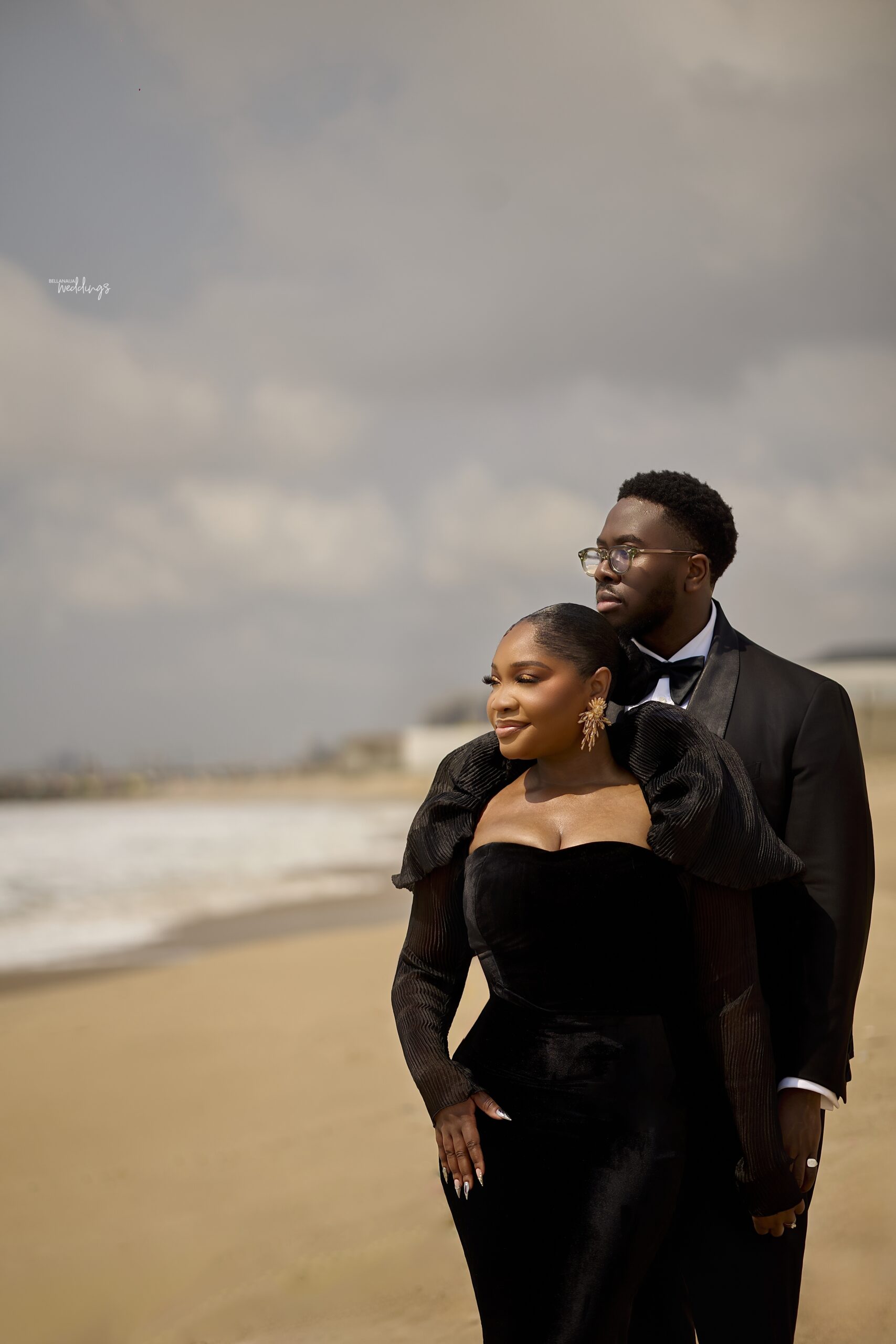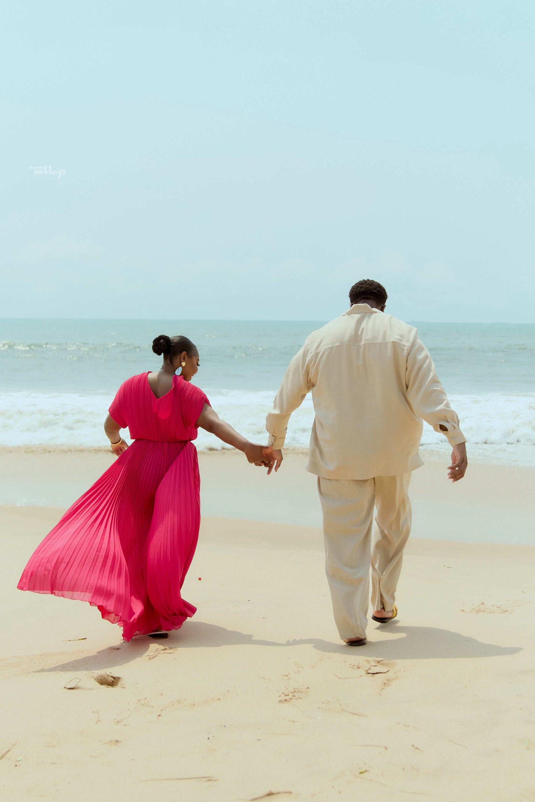 2022 was a year of reflection for Tobi, and he prayed to God for a beautiful love. Little did he know that these prayers were heard and about to be answered. Shortly after, he had a prophetic dream about his future bride, and it all began to fall into place when he stumbled on Sorsor’s Instagram page. They had a brief birthday interaction, and by some divine luck, they met again at a wedding in London. The connection was instant and perfect. It didn’t take long for Tobi to realise she was the one for him. Now the lovebirds are getting ready to say ‘I do!’ It’s sweet love, electric chemistry and elegant style in their beachside pre-wedding shoot, and we’re loving every bit of it. Their love is an answered prayer, one truly written in the stars. 😍