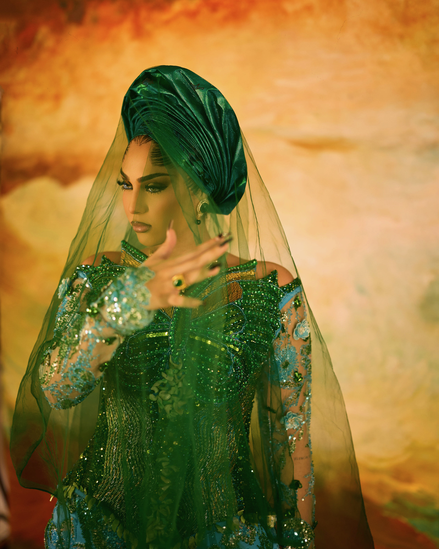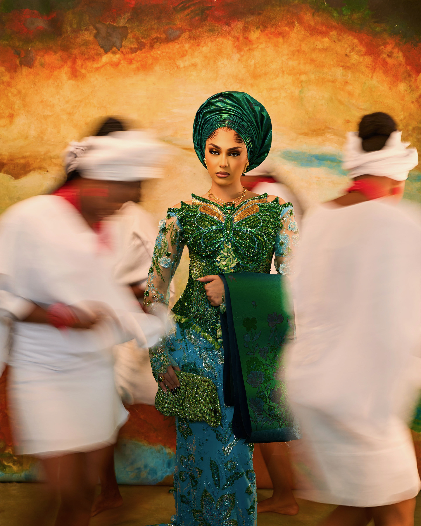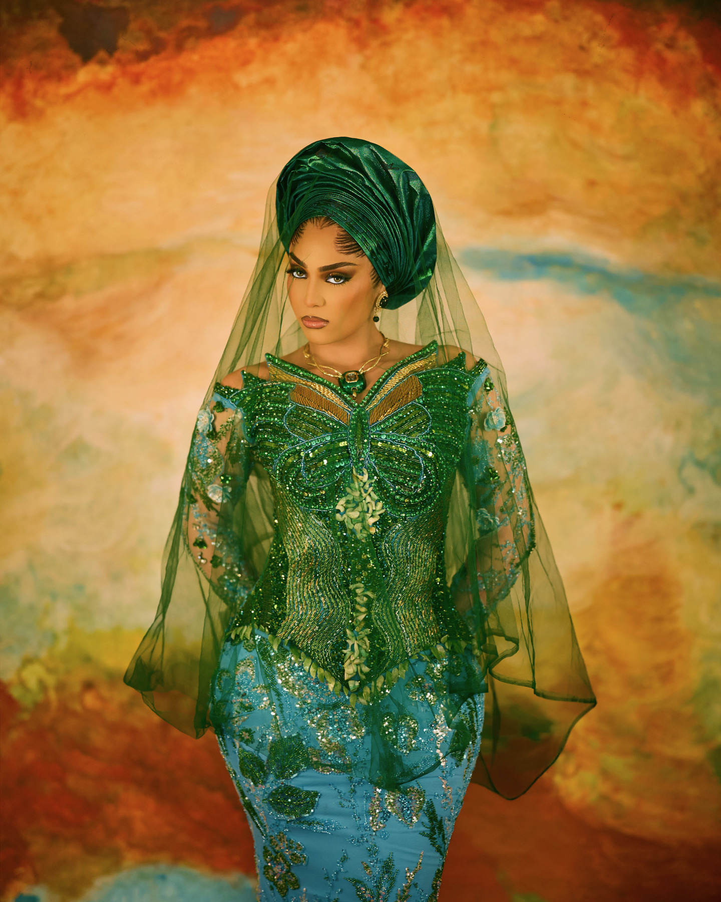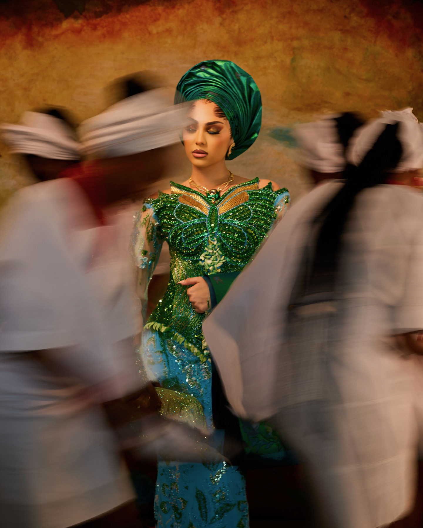 To that effect, here’s a truly exquisite Yoruba traditional bridal look designed by Styled by Cellas that seems so unreal because it’s so gorgeous! The green bodice is layered with intricate beading and a butterfly-patterned centre. The sleeves are embroidered with floral designs, and the blue skirt is also covered in beads. Absolutely breathtaking! Now let’s talk about this makeup; bold, captivating and radiant, all kudos to Oteniara Makeovers. To complete this look with cultural elegance, Demmy Gele stepped in and pleated a perfect sego gele. We are absolutely in awe of this magnificent look as it’s one truly fit for queens. You can also find more beauty looks here.